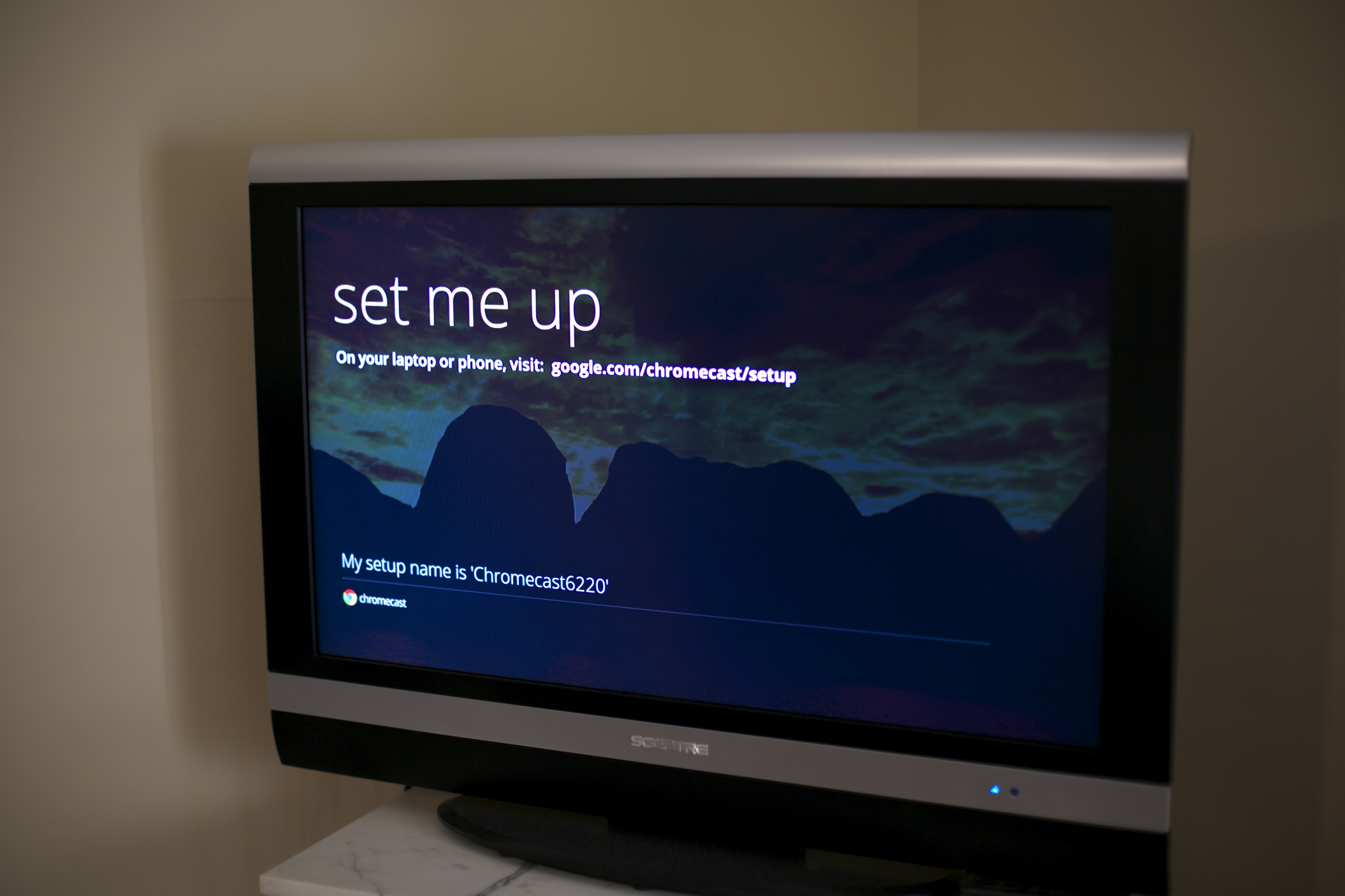 The good news: The HDTV’s sole HDMI port was free since our DirecTV box has to use component video cables (for reasons I won’t go into here). The Chromecast requires a separate power source, though. You can either plug it into a USB port or into a wall socket. But the nearest wall socket was too far away and the TV didn’t have USB. So what did I do? I used the USB port on the DirecTV box. The Chromecast ONLY needs USB for power, so just about any USB port on any device will do. So I powered Chromecast up, opened my laptop, and downloaded the Chromecast software needed to set it up.