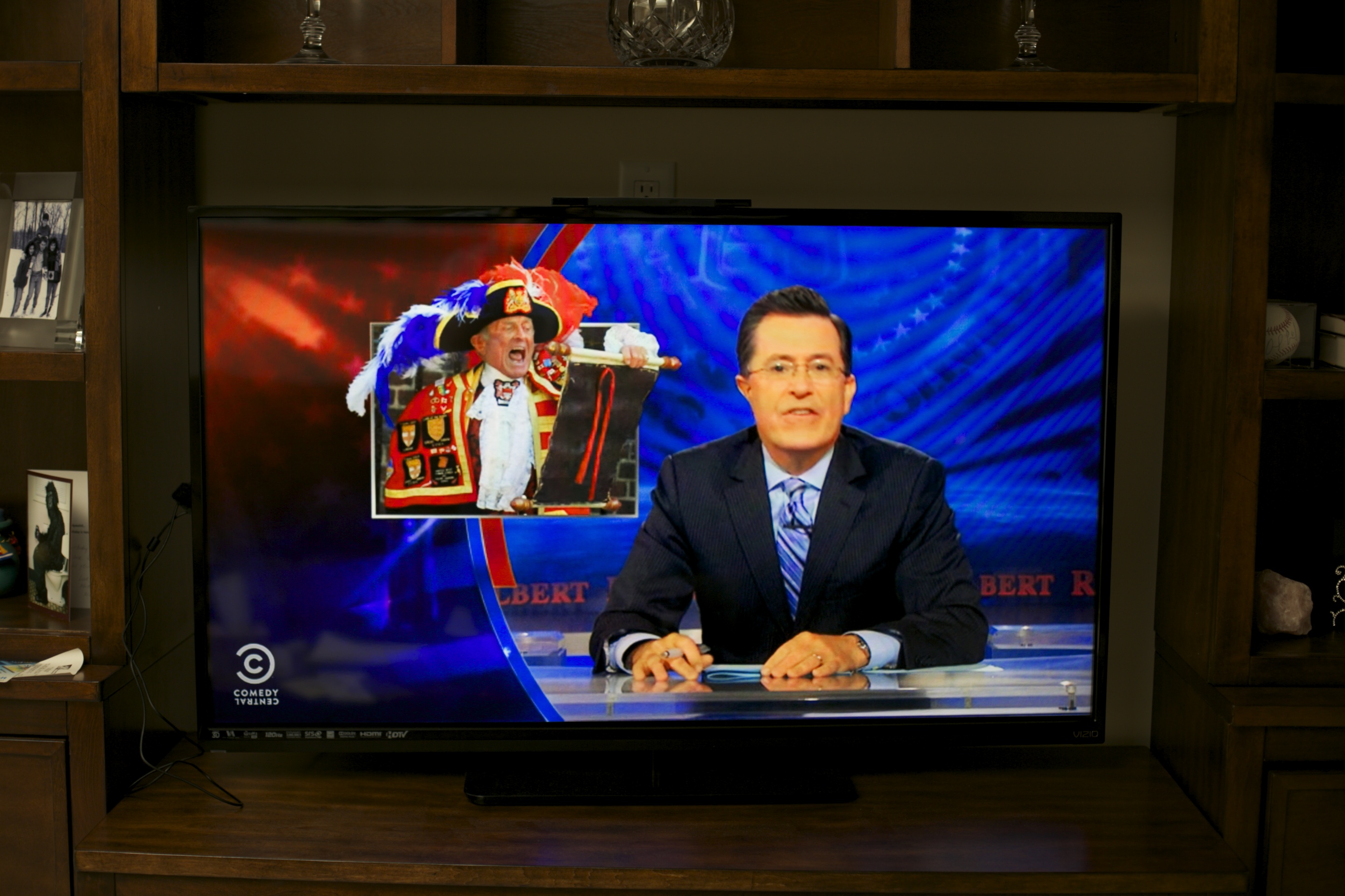 “The Colbert Report,” streaming off Hulu onto a TV via the Chromecast and a laptop.