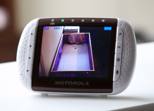 To me, that defeats the whole purpose of having a baby monitor, though.  I want a system that will let me know whenever the baby wakes up as soon as it happens, not one that I have to check into.  That’s why I opted for Option 1.  After trips to both Target and Babies R Us to see what they had to offer, we opted for the Motorola MBP36 because its 3.5 inch screen was the largest we could find.  (Note: Motorola makes monitors in smaller sizes as well, which run cheaper.)