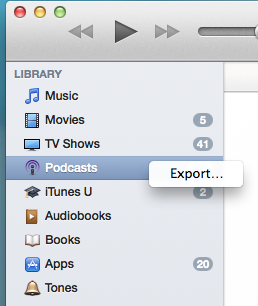 A cursory internet search reveals that a lot of popular podcast apps support OPML, so if you’re switching apps and you’ve got A LOT of subscriptions to re-subscribe to, do take advantage of this convenience.  Note:  This method will inform the new program what podcasts you’ve been subscribed to, but it won’t transfer other metadata, like which episodes you’ve already listened to/downloaded.